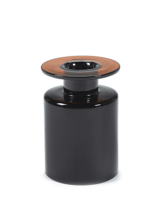Deze vintage-geïnspireerde vaas in zwart/donkerbruine kleur geeft een vleugje nostalgie aan je interieur. De vaas is onderdeel van de Wind & Fire collectie van Marie Michielssen en is verkrijgbaar in verschillende maten. Combineer het met andere vazen en glaswerk uit dezelfde collectie voor een speels effect.